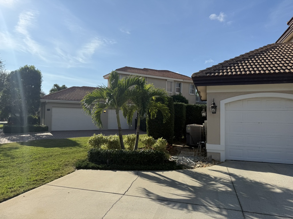 Residential landscaping with palm fertilization and maintenance at Cloisters in Indialantic, Florida